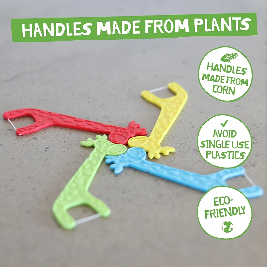 Hilo dental infantil con palillos biodegradables. Sabor fresa.