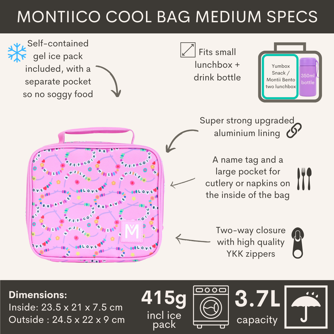La bolsa térmica mediana Montii es la compañera perfecta para cualquier picnic o almuerzo. Está diseñada para durar gracias a materiales de primera calidad, como el forro de aluminio de alta calidad y las cremalleras YKK, todas sometidas a rigurosas pruebas de durabilidad.