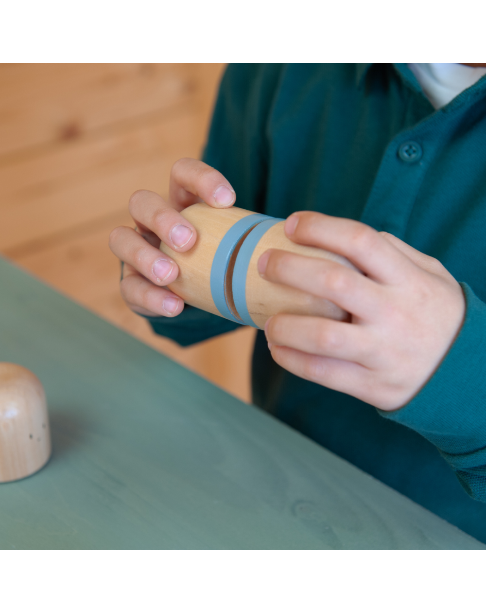 4 personajes gigantes con 4 sonidos distintos. Divide los personajes en 8 partes, mézcla las piezas y trata de emparejarlas de nuevo, mediante el sonido. Potencia los sentidos auditivos, la motricidad fina y la coordinación mano-ojo. Material didáctico idóneo para niños o personas con algun tipo de diversidad funcional y/o el colectivo de personas mayores. Incluye una bolsa de tela. 10 cm x 5 cm cada personaje.