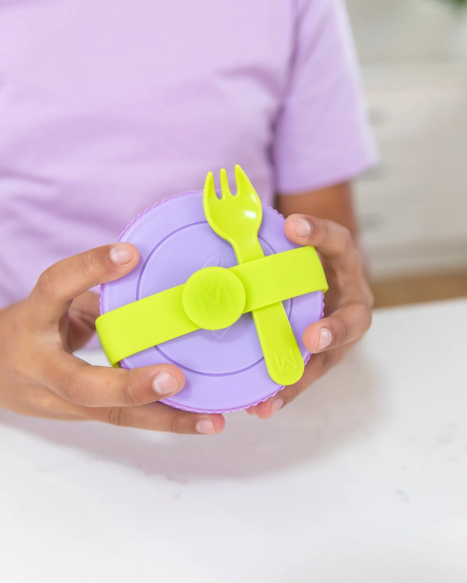 Mantén tus cubiertos seguros con nuestra práctica banda de silicona para tarros de comida. Perfecta para picar fuera de casa.